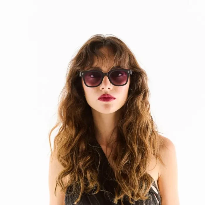 It is a unisex eyewear model with ablack frame with soft corners, dark transition lenses, 3 light filter lenses with UV 400 protection