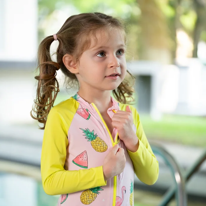 Owli SunSafe UV Protection Swimsuit Protect children's sensitive skin against the sun with Owli SunSafe UV Protection Swimsuit Swimsuit! Owli SunSafe UV Protection Swimsuit helps protect your baby's skin from the harmful effects of the sun thanks to its UV protected fabric. Its very light breathable fabric does not weigh down in and out of water. With its fast-drying structure, it supports children to have a pleasant time on the beach. The flexible fabric that fully covers the body does not prevent the child's movement. It provides protection from the sun with its long-arm design. Thanks to the long zipper on the front, it can be easily put on and taken off. 79% Polyamide, 21% Elastane Made in Turkey.