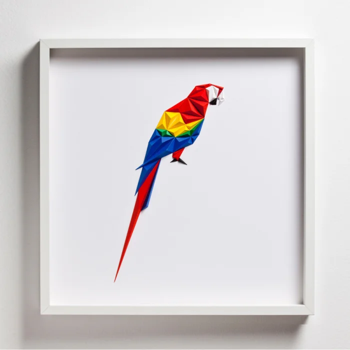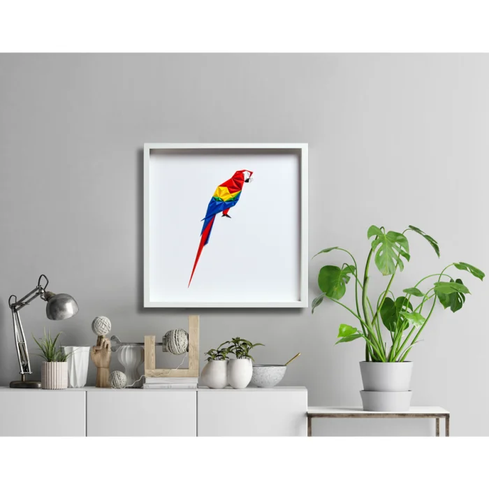 The design is fixed on a paper-covered MDF surface. It is shipped with wooden frame and Plexiglass.