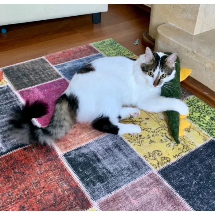 DINO is the pawdaz's new cat toy with lots of sound and smell. It contains 100% natural Actinidia polygama, AKA “matatabi powder” prepared from the most special branches of the matatabi tree. Since Matatabi contains essential oils that cats like to contact with, cats love to hug, rub and play with it. With 15.7x4.7 inches, “DINO” with bell and rustling sound is a perfect playmate for cats.