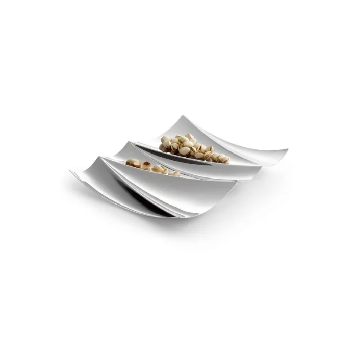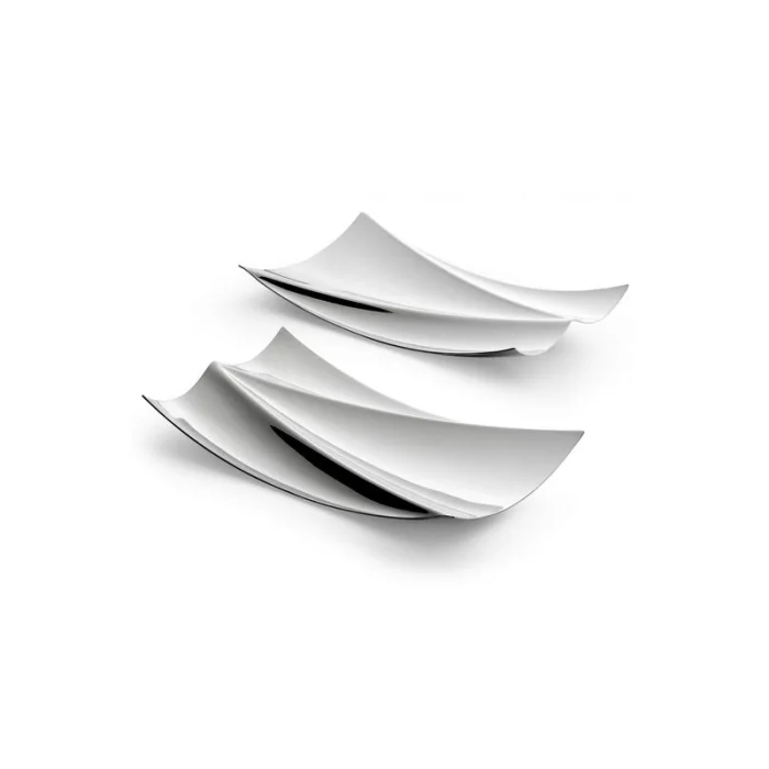 Hamburg's new nautical landmark, the Elbe Philharmonic Hall, is affectionately called "Elphi" by locals and fans. Its most striking feature is its sloping roof, which mimics the movement of the wave. And so, it is subtly reflected in their appearance that both Elbharmonie sugar vessels expertly incorporate these patterns, and this is a beautiful memory of the architectural masterpiece. Like a good orchestra, they are perfectly coordinated, and the shiny vessels, both made of stainless steel, look forward with excitement to their first performance. Even in an individual performance, they are most convincing, with a remarkable graceful curve that recreates smooth wave movement. But when they play together, they prove their true power: they can be placed behind or on their sides in any way desired in different variations and turn into one large container. By combining many sets consecutively, an impressive image emerges on a long table; They offer a sumptuous play of colors, especially when stuffed with nuts, flowers or spices.