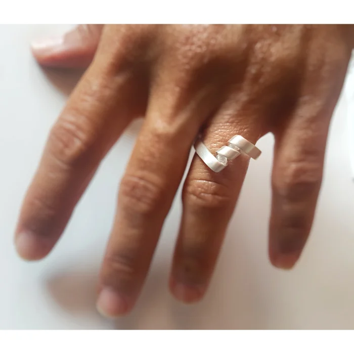 The spiral ring, which I designed and produced with the spiral upper stance and asymmetrical arms, is a ring that you can use with pleasure with its simple posture.