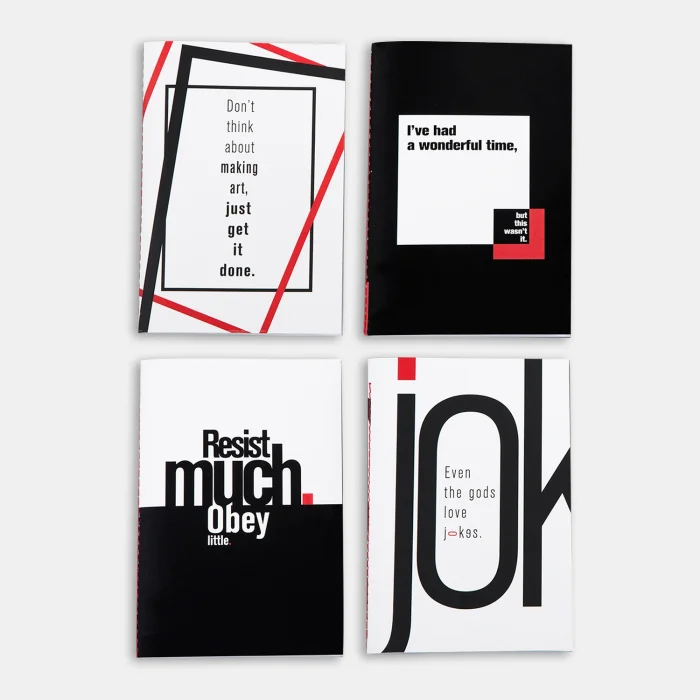 Quotation Master Notebooks: 4 quotes from 4 different world famous people. Typographic, modern and simple covers for ruled notebooks.