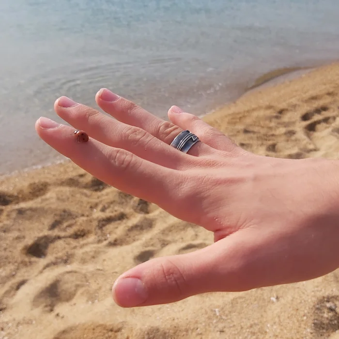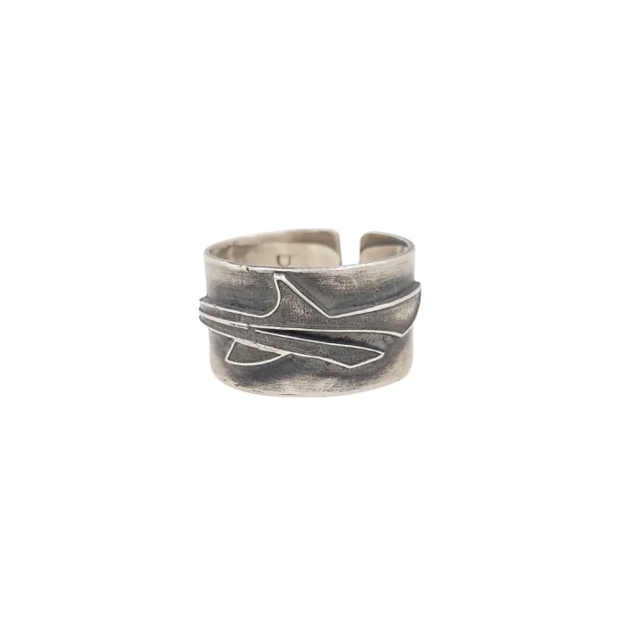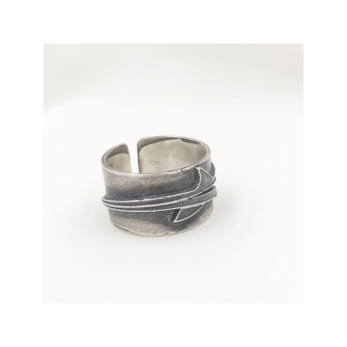 Thick sterling silver ring, oxidised, with an adjustable band.