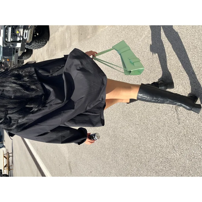 Magnetic fastening tape. Detachable chain hanger. Made from animal-free leather.
