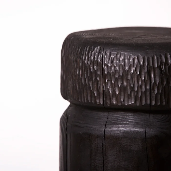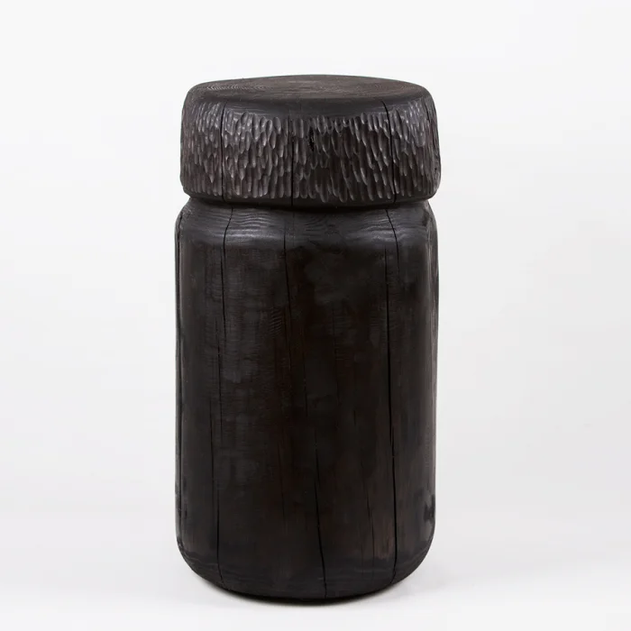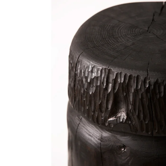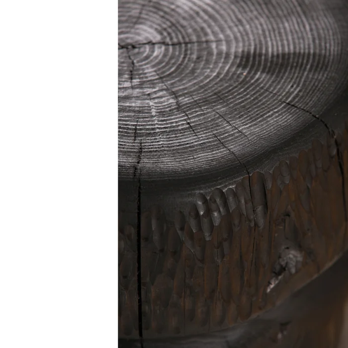 Kabuk is shaped and and crafted by its designer. Because it has a sculptural appearance and crafted by hand, every product may vary with small details. The table or bedside is suitable for use as a bedside table. Because of the use of natural massive materials in products, the color tones and grains may vary.