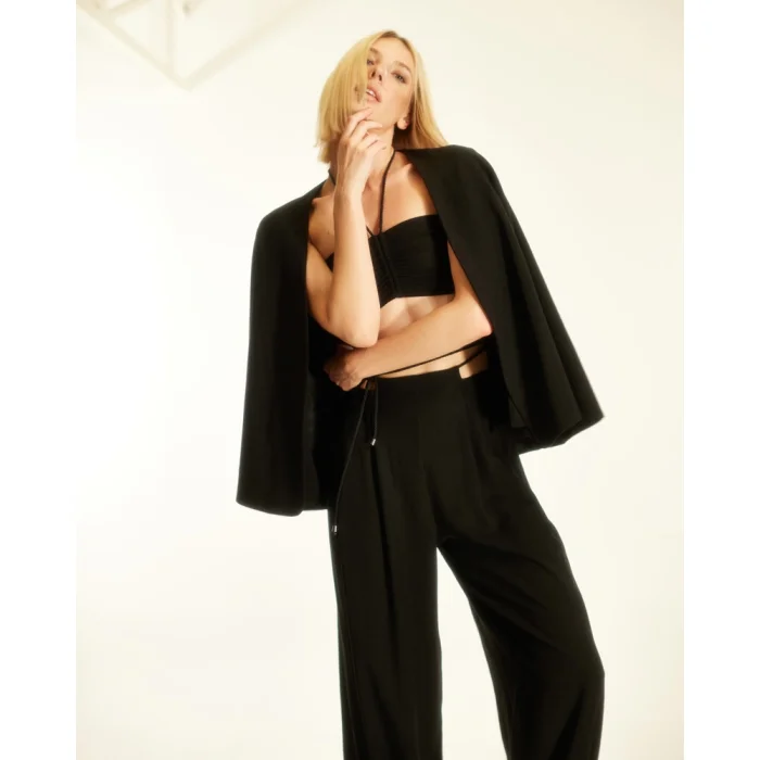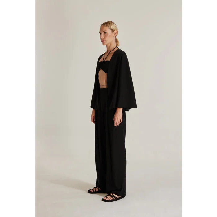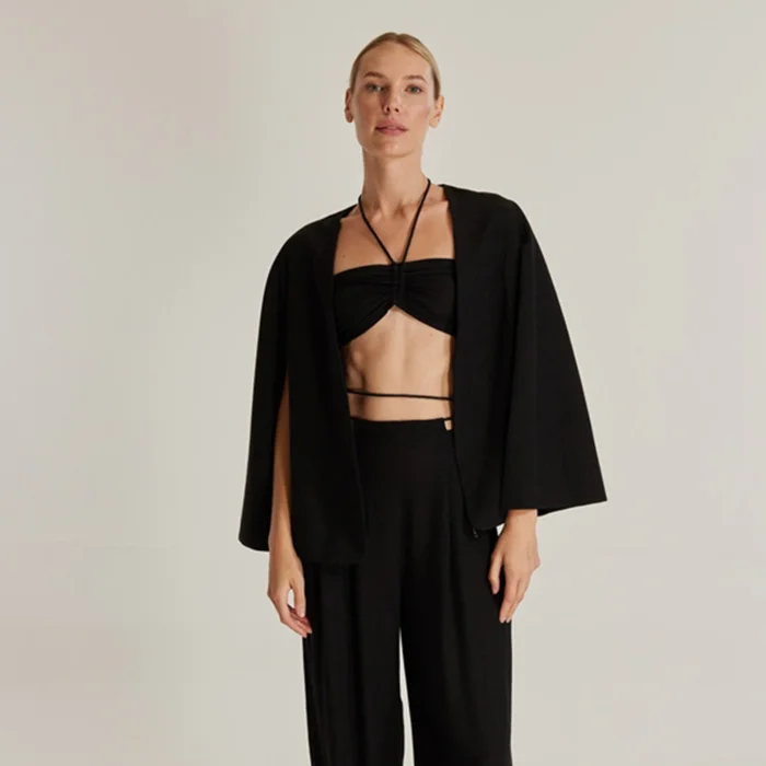 The Srikata Jacket is a stylish piece with a cape-like cut. It is crafted from elegant linen fabric and comes with a lining. The Srikata Jacket is a perfect choice for those seeking both comfort and style. With its unique design and high-quality fabric, the Srikata Jacket complements your overall look and can be worn throughout the seasons.
