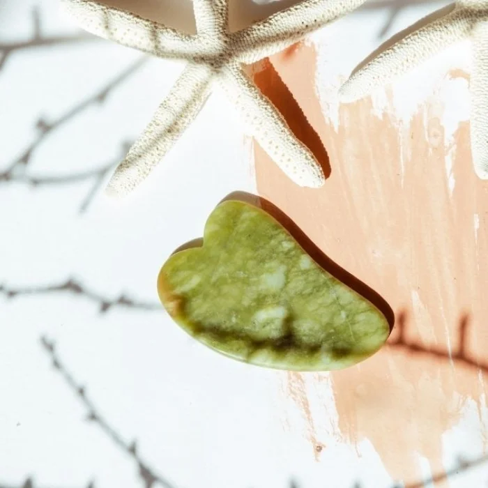 Gua Sha Massage Tools usually made of precious crystal such as jade and rose quartz. 'Gua' means rub and 'sha' is a definition of the reddish millet-like petechiae.
