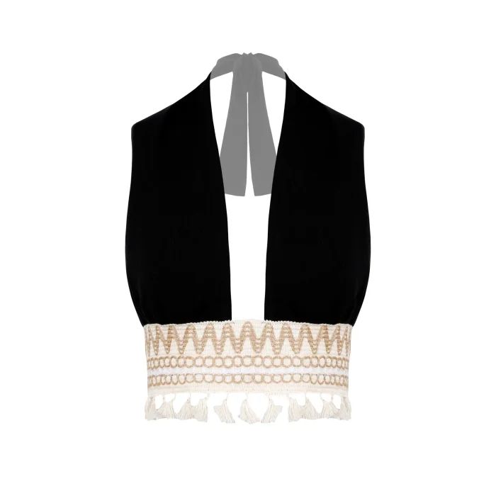 Waist Tassel Detailed 100% Linen Crop Top 100% Linen SIZE:1.72 BODY SIZE: 84/60/88 SIZE OF THE PRODUCTS WORN BY THE MANNEQUIN: S/56