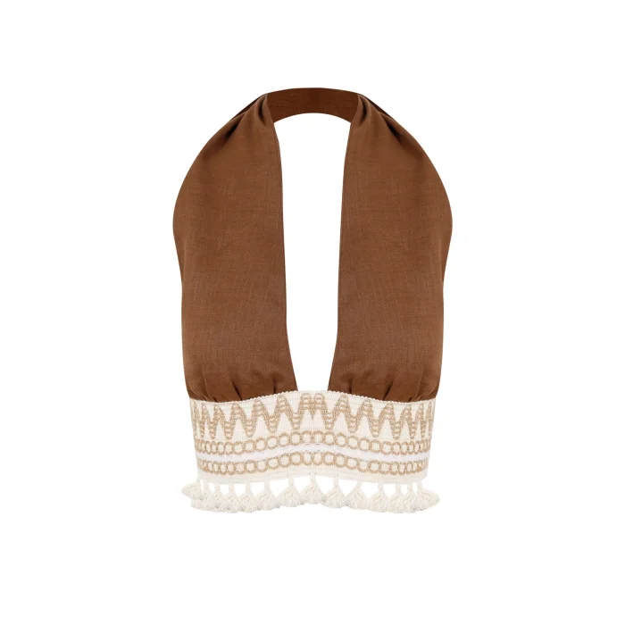 Waist Tassel Detailed 100% Linen Crop Top 100% Linen SIZE:1.72 BODY SIZE: 84/60/88 SIZE OF THE PRODUCTS WORN BY THE MANNEQUIN: S/56