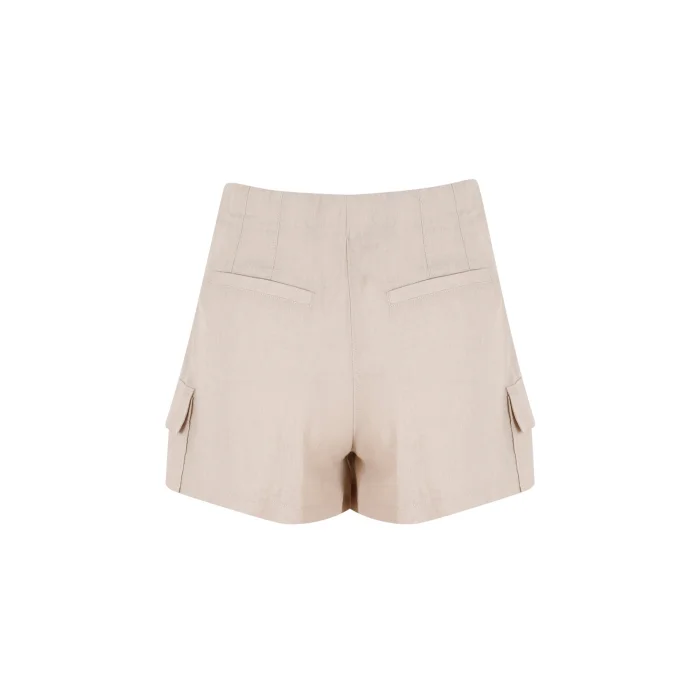 100% Linen Cargo Pocket Shorts 100% Linen SIZE:1.72 BODY SIZE: 84/60/88 SIZE OF THE PRODUCTS WORN BY THE MANNEQUIN: S/54