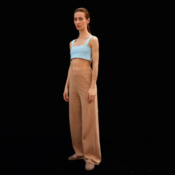 Highwaisted staight cut long pants with elastic band. Naturally dyed with pomegranate and cutch.