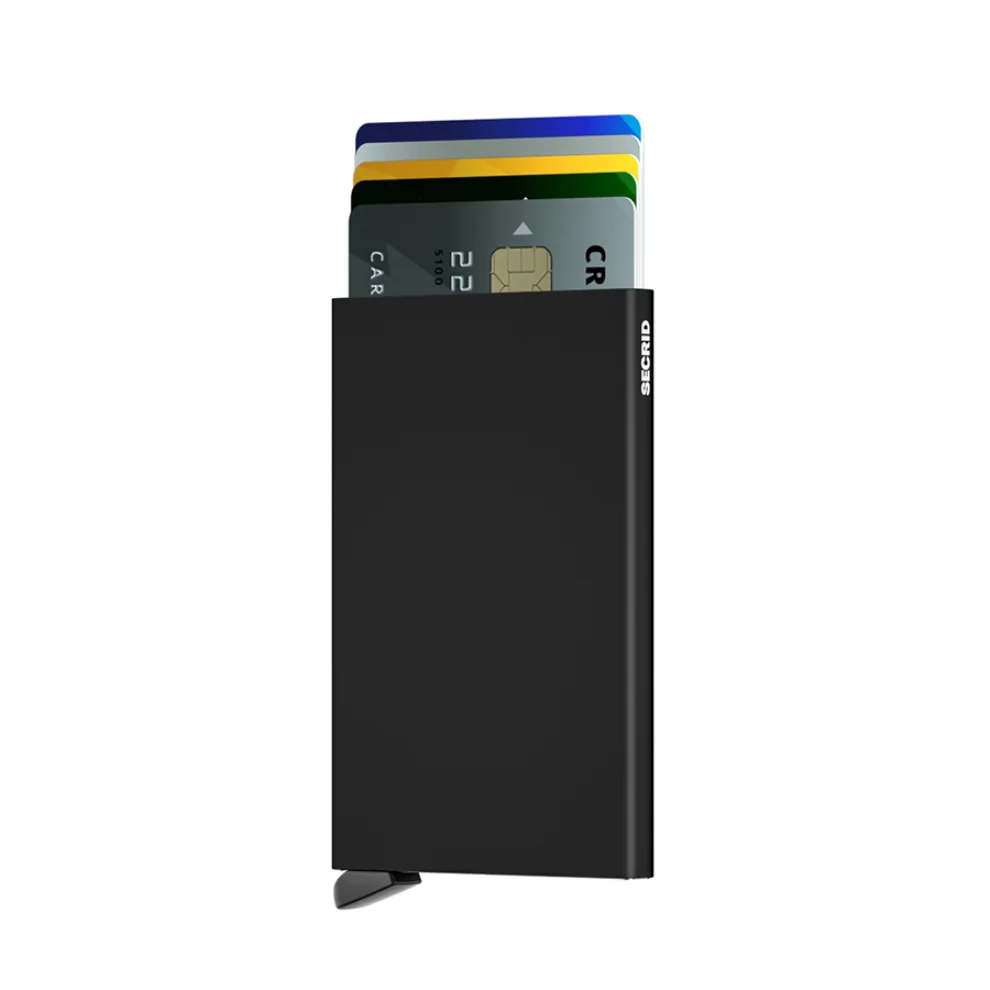 The Cardprotector is the heart of our collection and our most minimal wallet. The patented mechanism allows you to slide out your cards with one simple motion, ready for immediate use. The aluminium casing protects from bending, breaking and unwanted wireless communication.