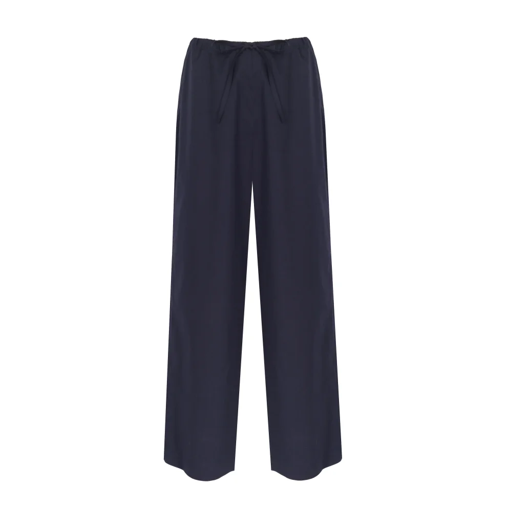 Lace-up, long and straight-cut trousers. It is made of lightweight cotton poplin fabric with 3% elastane for extra comfort. 97% BCI Cotton, 3% EA.