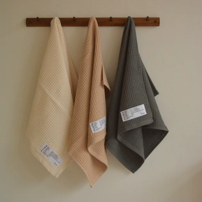 The hand towel is made of 100% organic cotton. It can be used as kitchen towel, hand towel, etc.