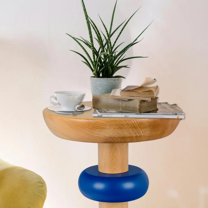 Function: Coffee Table Design: Sodd Design Material: Solid basswood, Lacquer paint Colors: Blue-Ral 5005 - Ral 5015 NOTE: Product colors may differ from phone and computer screens. You can check the colors from the Ral Chart, which is an international color chart. NOTE2: Trees cut from different parts of the solid linden tree make each product different and unique. There are differences in natural textures and colors.