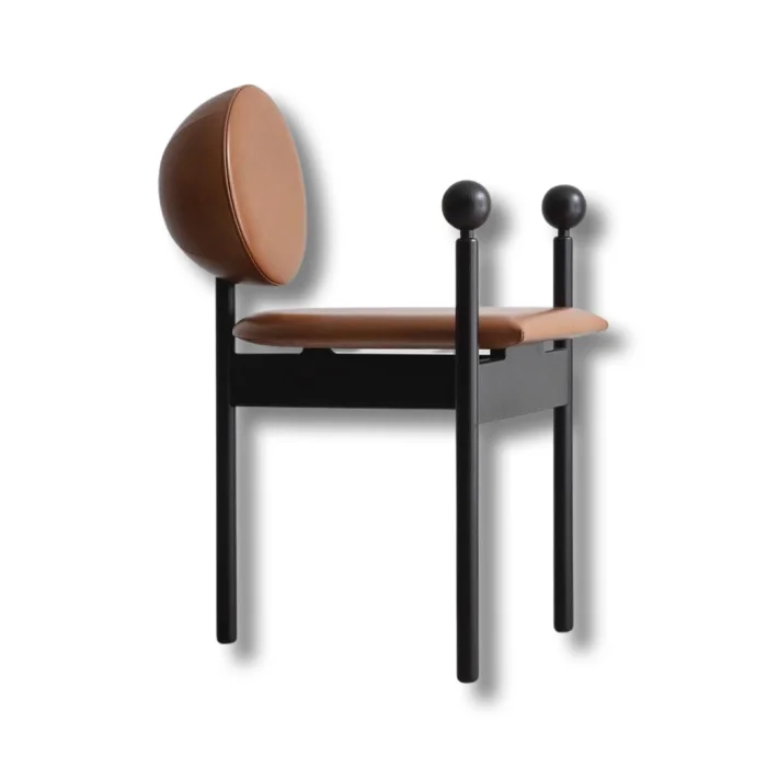 It consists of natural wood and real leather. It measures 57x60x82 cm.