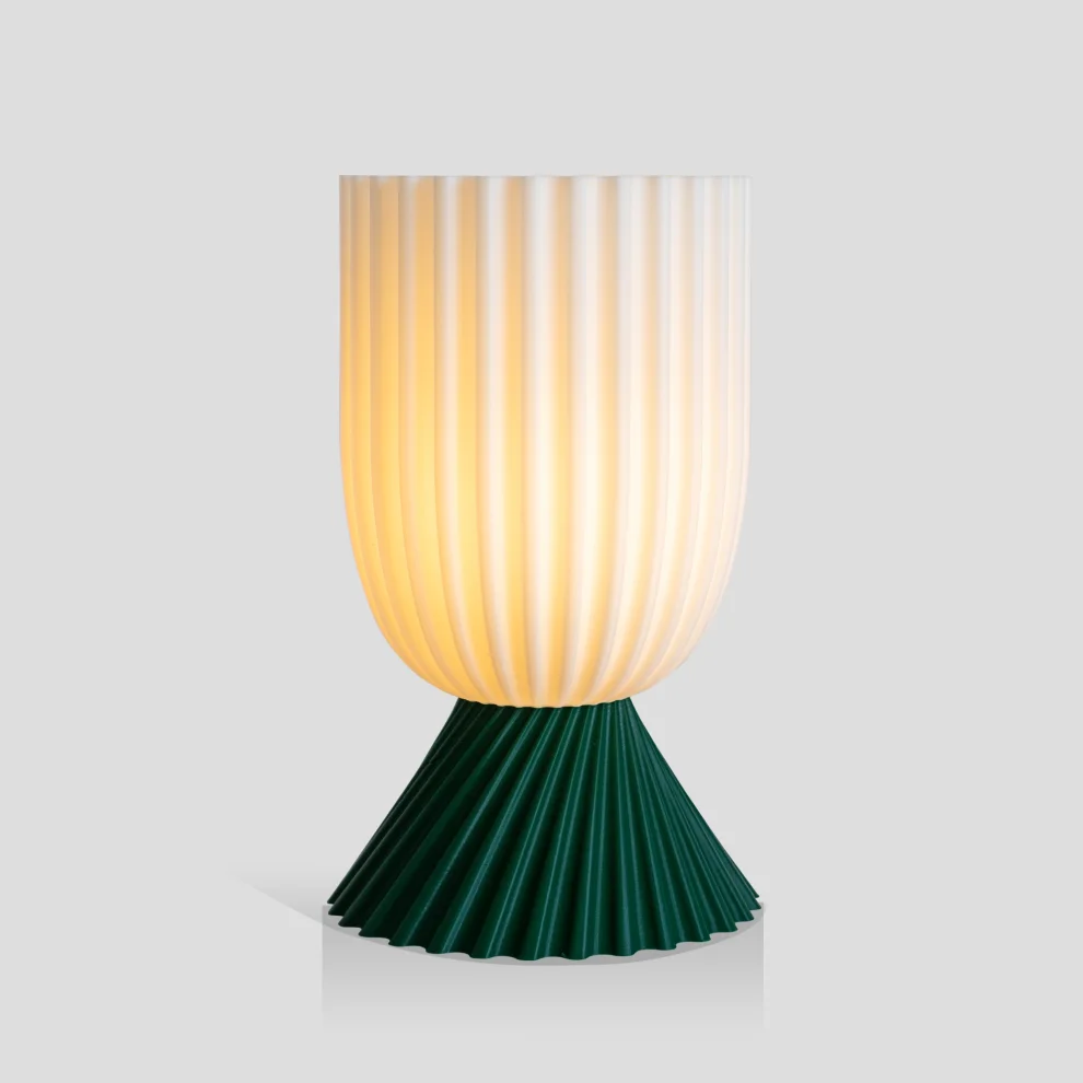The modern lamp is formed with 3D printing technology. The high-quality material used in the printing is an eco-friendly bioplastic manufactured from sugar cane and corn starch. Therefore, it is both environmentally conscious and a healthy choice.