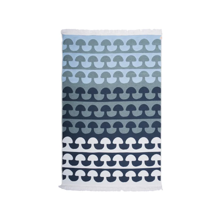 This kilim is designed by Studio Potato and made with recycled cotton fiber. Made on a looming machine, it's woven more tightly compared to hand made kilims and you can use it indoors or outdoors. You can use it with its 2 different sides.