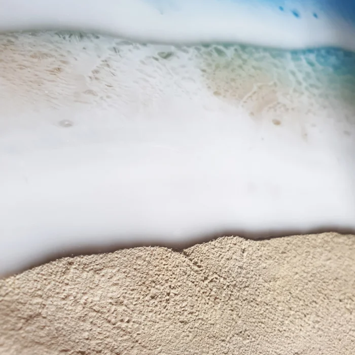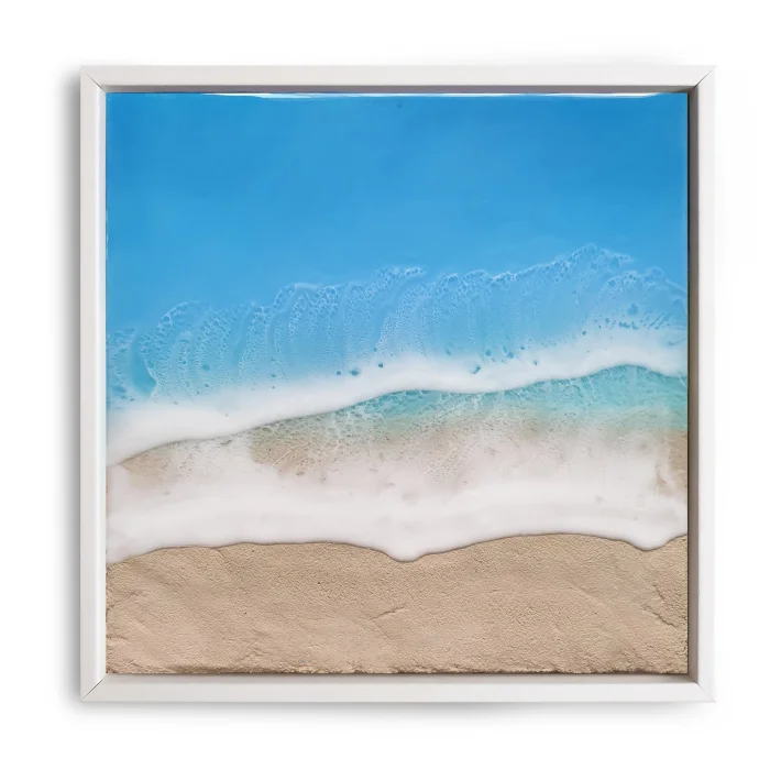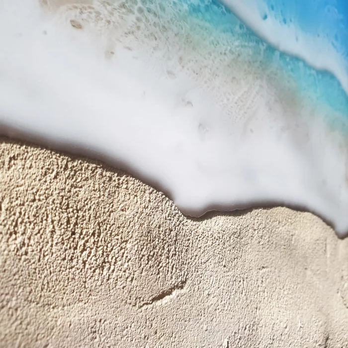 Acrylic painting on a wooden floor, three-layer wave of resin. Coastal texture made of sand. Frame included. Each piece is handmade in our studio. Since resin is a very fun but difficult material to work with, each piece develops its own character. Therefore, no one study is alike. Therefore, when you buy from our products, you will receive a special study only for you. It is recommended to display it in a place where there is no direct sun.
