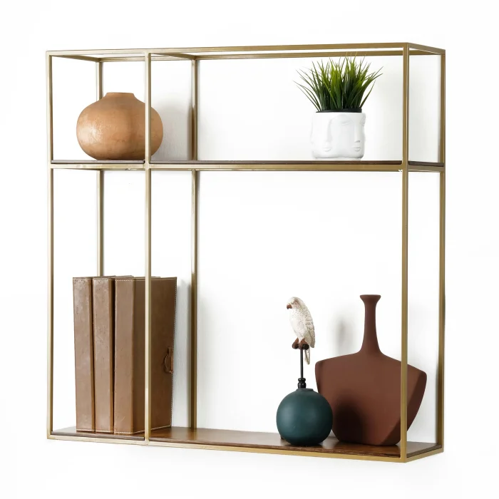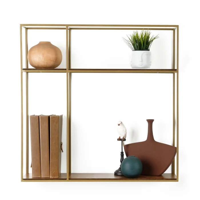 Shelves: Made of massive wood birch plyboard. It is colored with a wood preservative that gives walnut color.