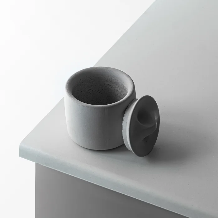 Each comes with a stylish lid and is ready for use in the kitchen. These unique spice racks in anthracite and grey concrete colors offer the perfect combination in terms of both functionality and aesthetics.