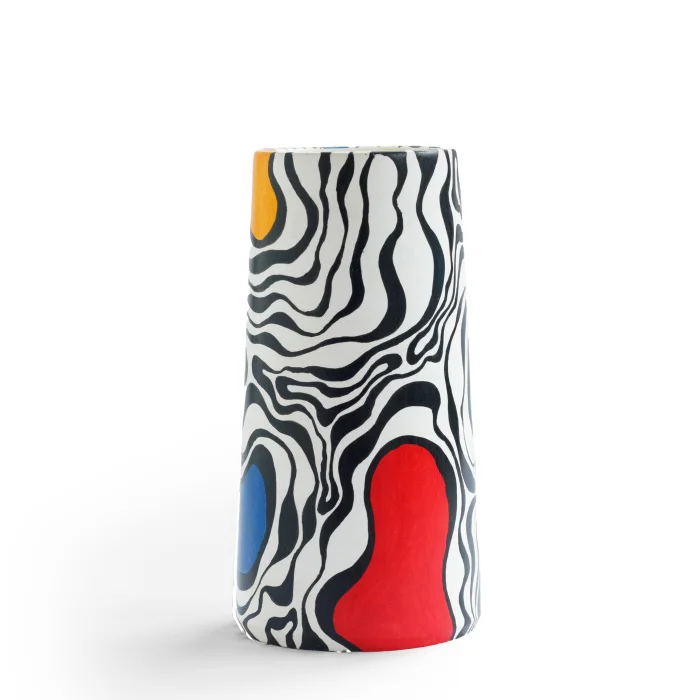 All exterior and interior are hand painted. The surface of the vase is covered with varnish specially produced for concrete products.