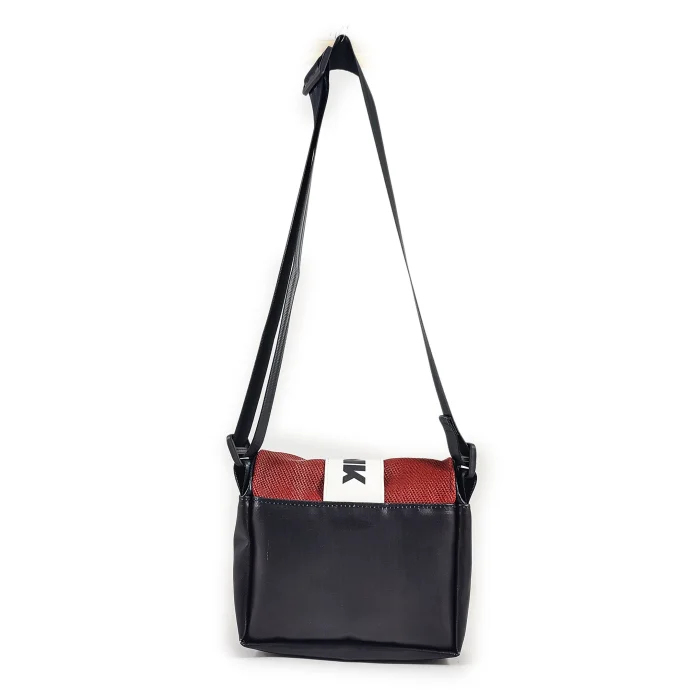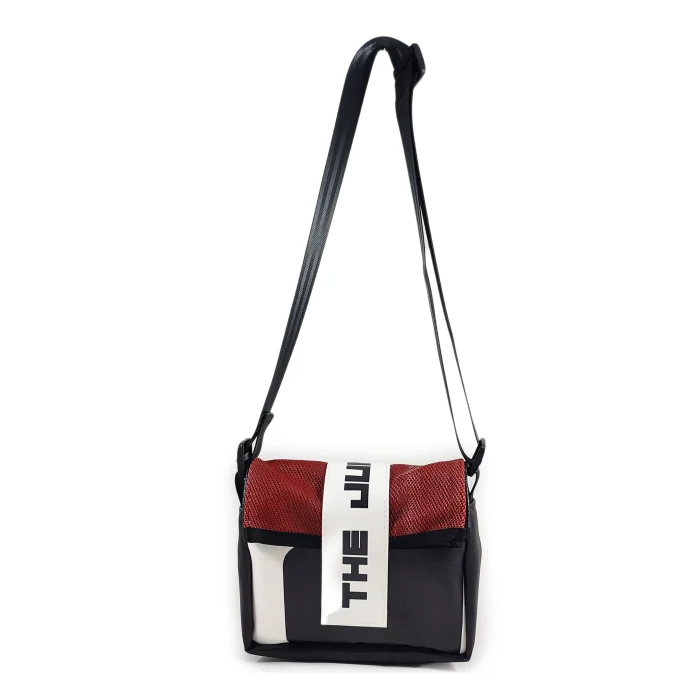 Product Features Adjustable shoulder strap, hook and loop closure, 2 inner pockets. Logo detailed waterproof design. Up-cycled and sustainable shoulder bag. Material Up-cycled truck tarpaulin, fire hose and seatbelt. Size 23 x 7 x 15 - 30 cm, 10 L. Product Details 100% handcrafted. Unique, one-of-a-kind design