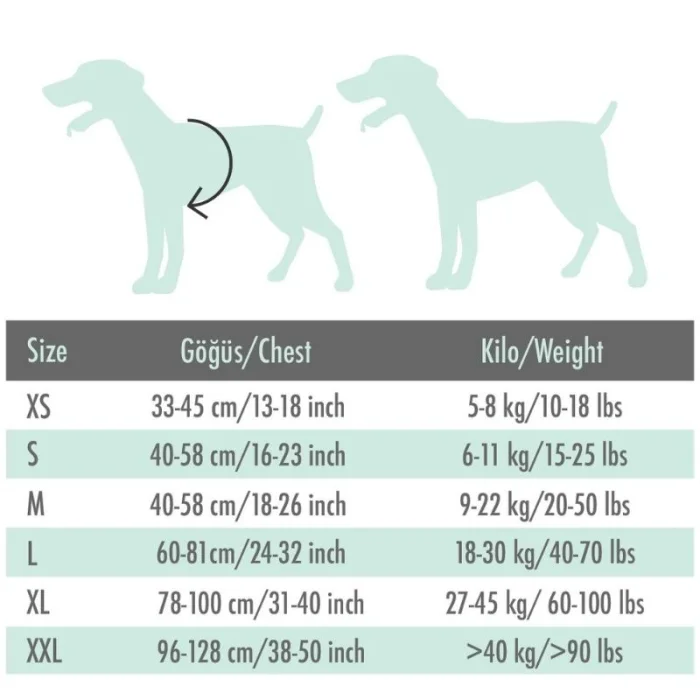 - Your dog will be much happier with the Hug Shirt with 4 different color options, produced from a special fabric with high gripping feature that completely wraps your dog's body! Our size options are between XS-2XL, you can see the size chart among the images.