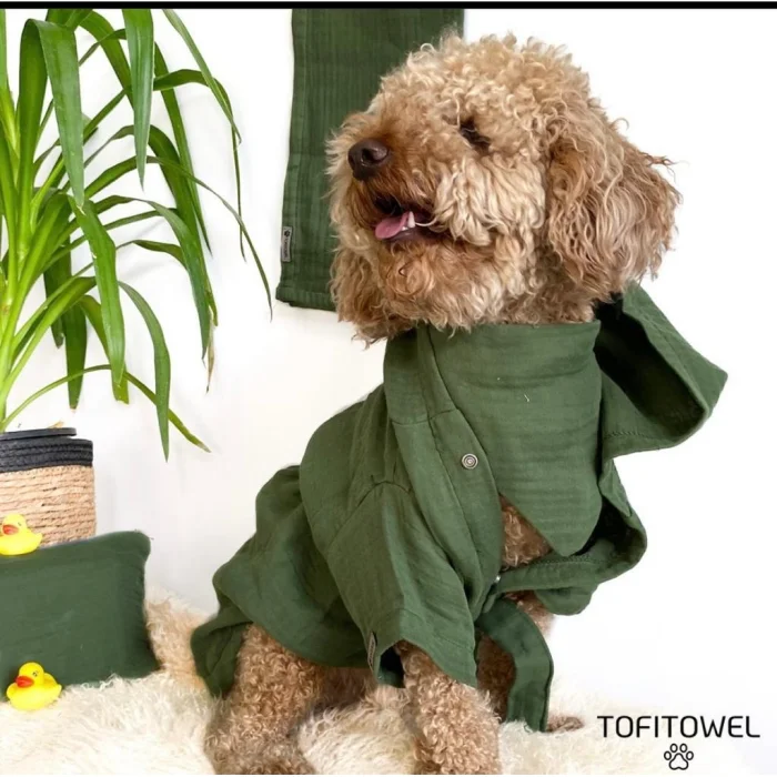 • Beach and Bath Use, 4 Layers of Muslin Fabric Structured, Dog Bathrobe
