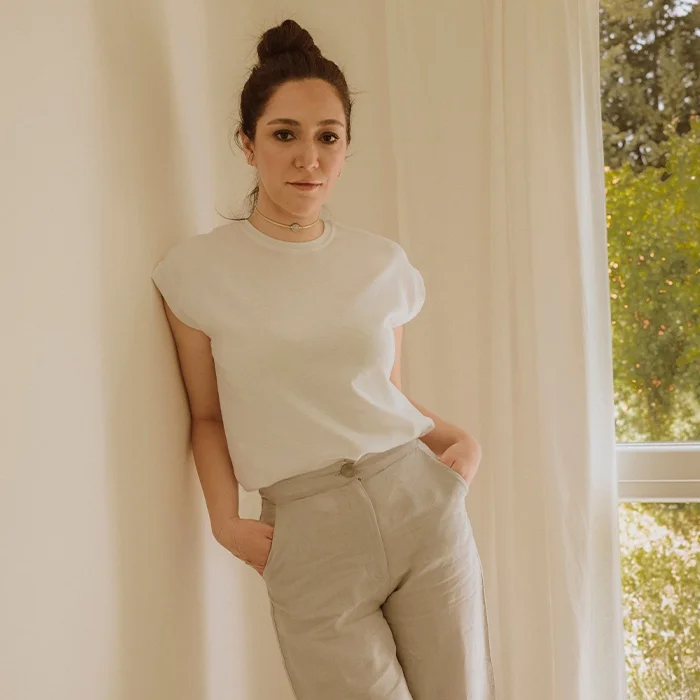 Ribbed round neckline, sleeveless, drop shoulder, giraffe logo embroidered on the back