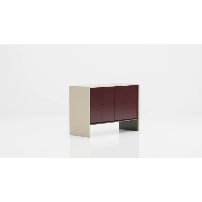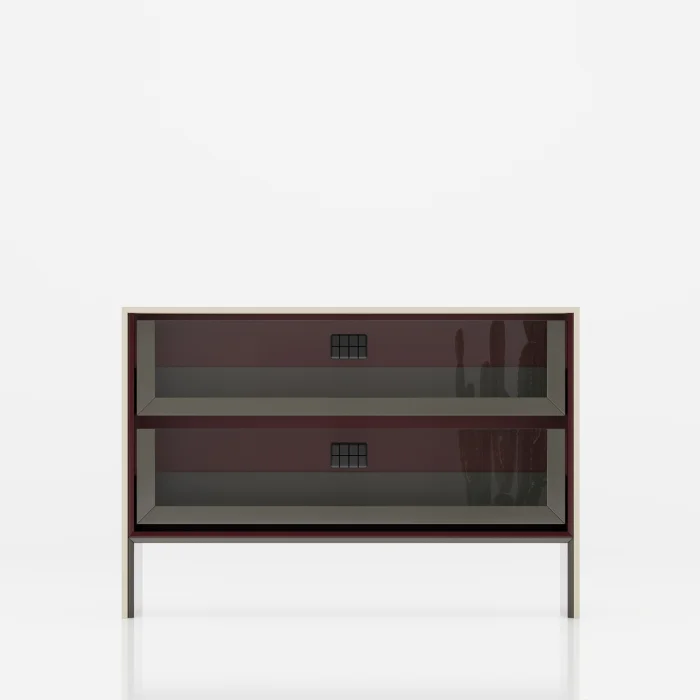 The lacquered painted skeleton on 1st Class MDF is combined with glass drawers. The handles used in the drawers are made of innovative materials with high-end workmanship. Module: 125*50 cm h:85 cm
