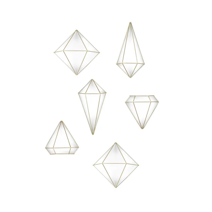 Can be arranged to reflect the individual style of the owner. Can wall mount, ceiling mount, or be used as table decor. Gift packaging. Mounting hardware included. Set of 3 geometric shapes (6 wall decor pieces).