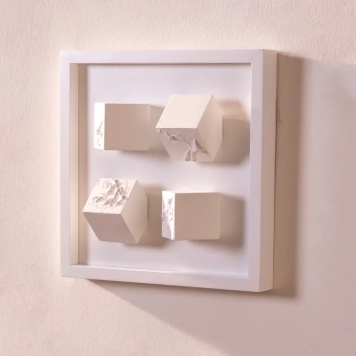 Colour : White Frame, Cross - cut white cubes with texture on one side