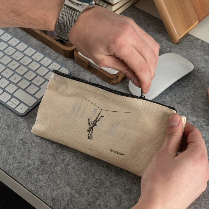• Product Dimensions: 21x10cm • Width: 10cm • Length: 21cm • 100% cotton. • Made of 245gr gabardine fabric. • The pen holder is unlined. • It is hand-sewn.