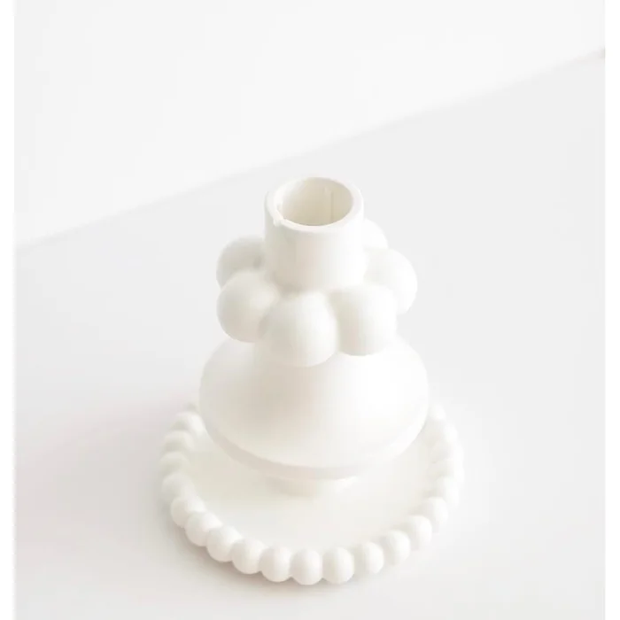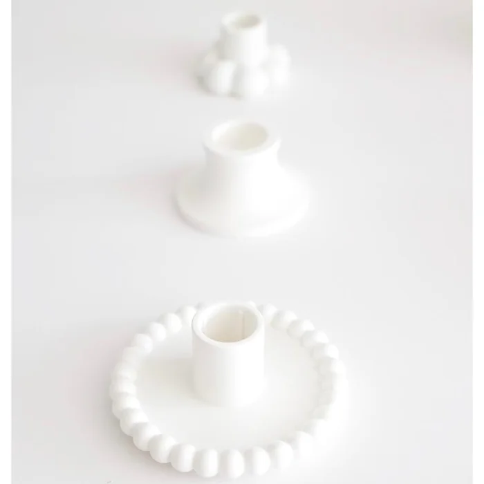Daisy Candle Holder; Height: 4cm Width: 5.5 cm Candle Hole: 2cm Bubble Candle Holder; Height: 4cm Width: 9cm Candle Hole: 2cm Cone Candle Holder: Height: 4cm Width: 6.5 cm Candle Hole: 2cm