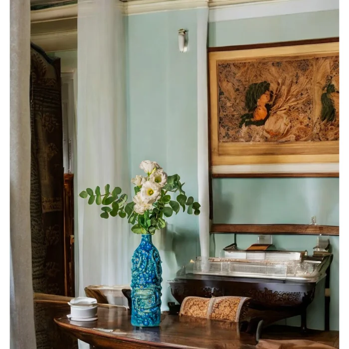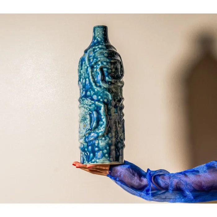 Product Details: Height: 31 cm Width: 13 cm Color: Blue Material: Ceramic Finish: Handcrafted Designer: Büşra Özdemir Features: Inspired by Picasso, elegant and contemporary design