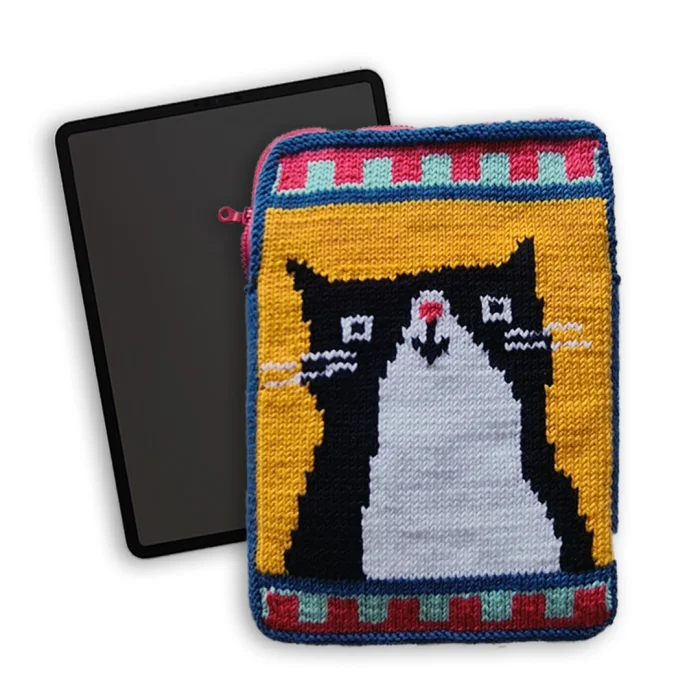 11" Hand-knitted Laptop/tablet Sleeve - Meow