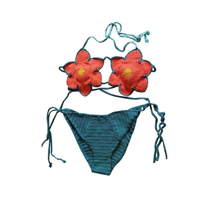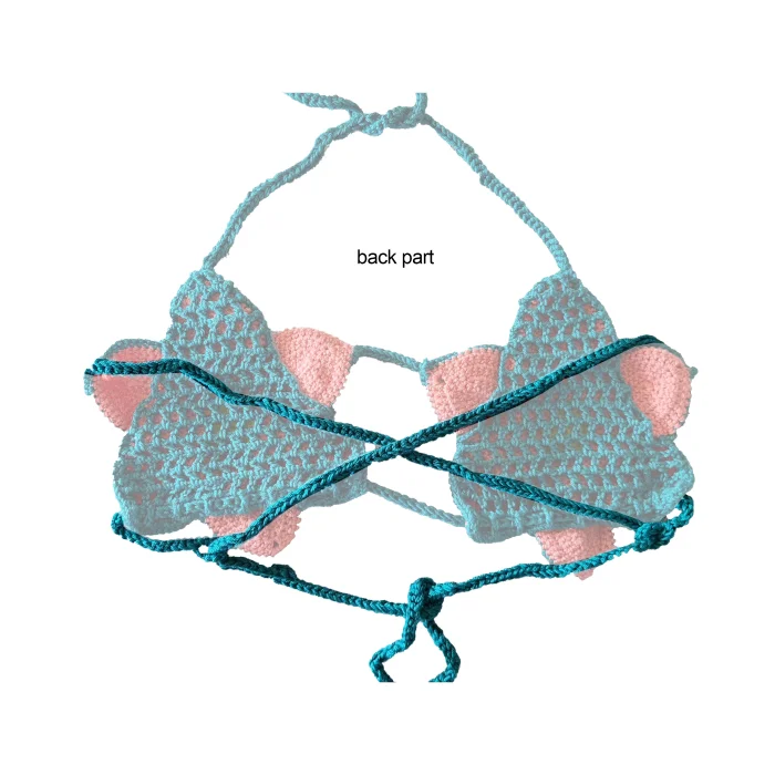 It should be tied at the back and neck and is adjustable. You can choose the size according to your breast size and preferred posture. You can choose a large size for a more closed posture. It is suitable for swimming, but for longer use, we recommend that you dress while sunbathing, not while swimming. The model's size is XS and its height is 162 cm Shot with XS-S size. Material: 100% Microfiber Acrylic Rope