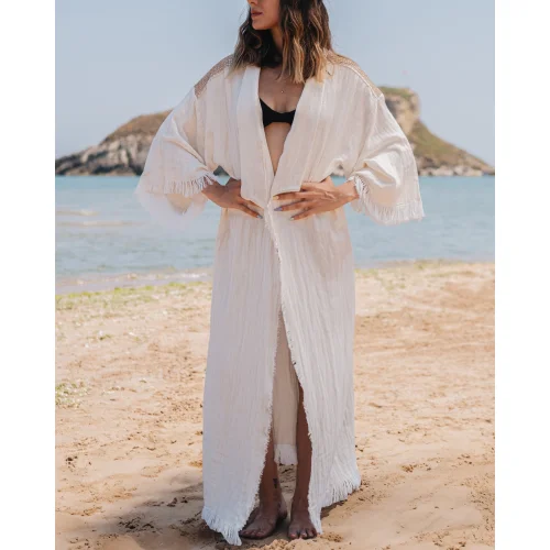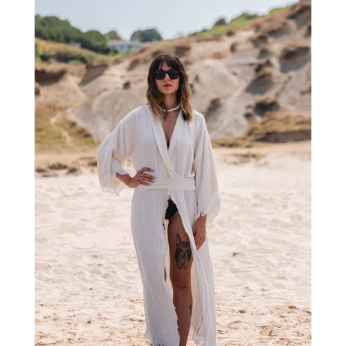 I am Kardelen, founder of Bohémisse, a sustainable, handmade, and natural bohemian clothing brand. I launched Bohémisse to support the slow fashion movement and create a brand that reflects these values. Our headquarters are located in San Francisco, but we conduct our production in Turkey, meticulously and in accordance with ethical standards. Bohémisse appeals to women who value uniqueness and quality. Our product range includes kimonos, kaftans, dresses, and two-piece or three-piece sets made from natural fabrics like muslin, bamboo, linen, and cotton gauze. The foundation of our collection is especially reliant on 100% organic Turkish cotton from Şile. This fabric is distinguished by its natural softness and breathability, and all our products are handmade from this material. We collaborate with a women's handicraft cooperative in Kastamonu, applying regional handicrafts to our products and supporting female producers. In our production processes, we prefer natural root dyes and use environmentally friendly, soluble, and recyclable materials for packaging. By producing on demand, we prevent mass production. Bohémisse is an ideal choice for women who are conscious of fashion as well as sustainability and ethical values.